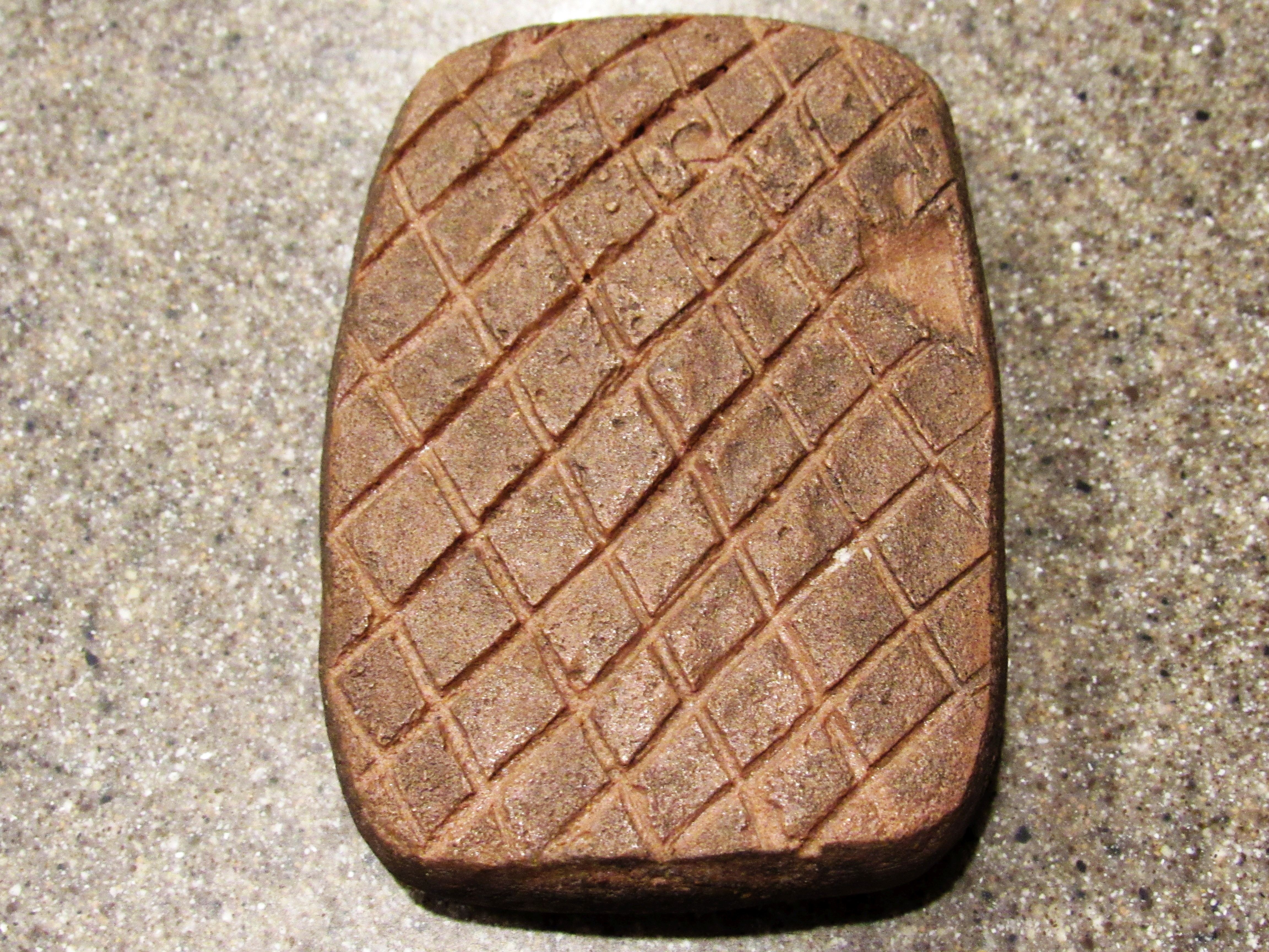 It was May 1999, a wet day without many other tourists, so we took our time at the Museum and enjoyed all it had to offer. The curators answered our questions as best they could and we bought more books and booklets than we should have and purchased a replica of the Birdman Tablet found here in a dig, to take home as a souvenir, (See the photo’s of it below, they are almost the size of a normal playing card). Then we headed out to walk the grounds and climb Monks Mound.