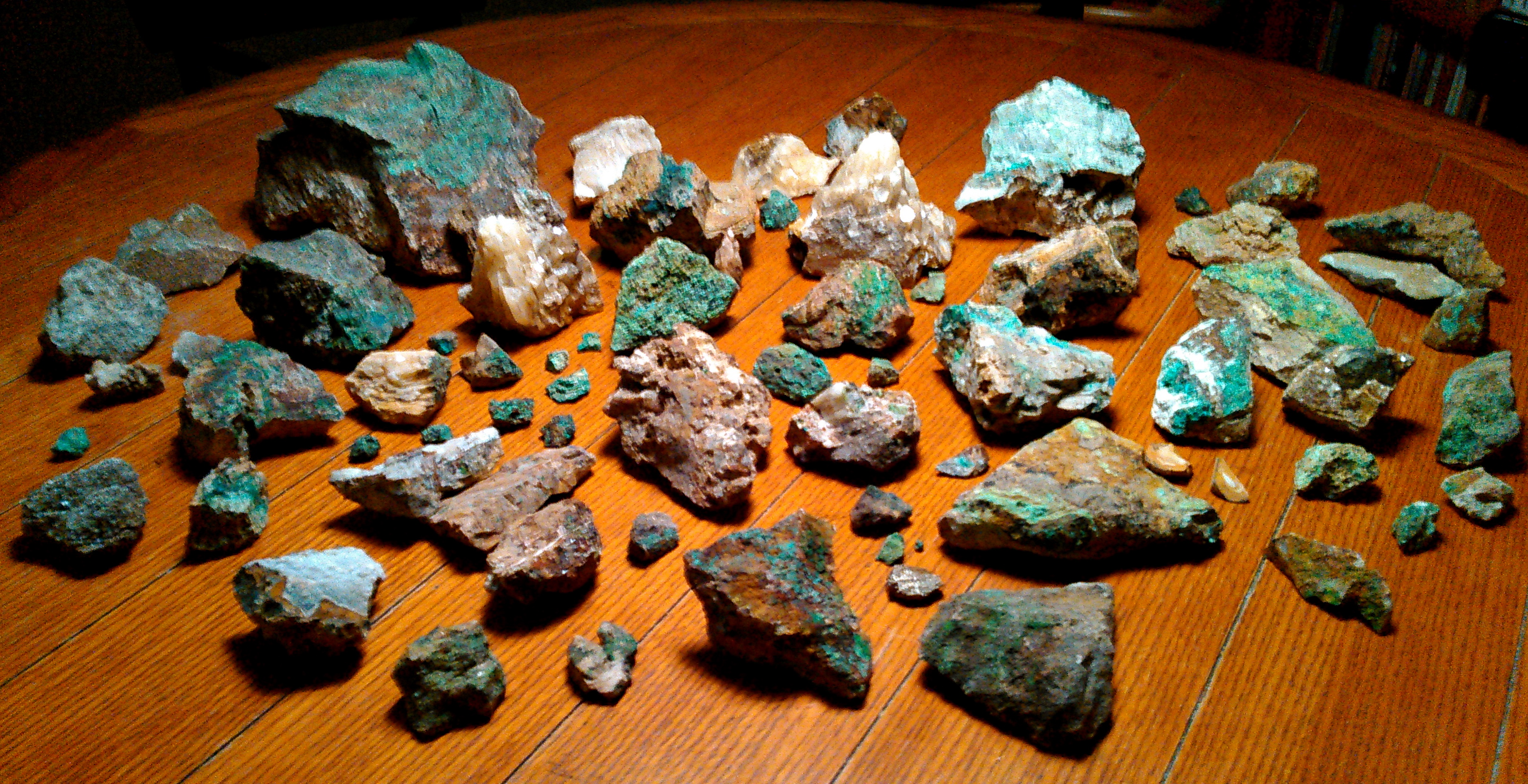 we had a table full of green malachite in the raw