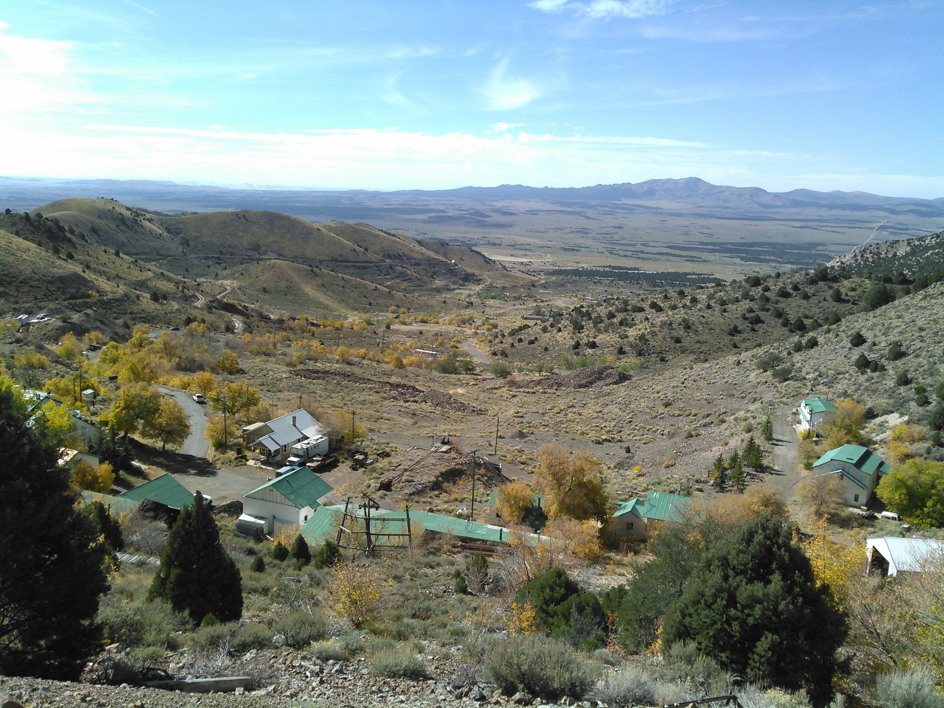If you look above the green rooftop on the left, you can see where we rockhounded, or at least the white of the cars and a little white house in the area.