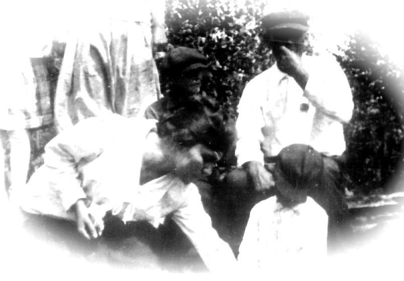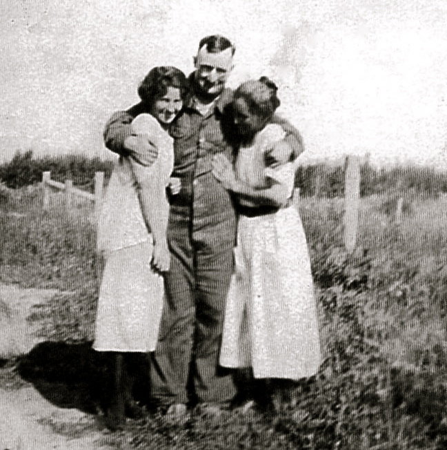 Frank was brought home where the Doctor tried to save him, but he got pneumonia and died two days later, leaving Mary Louise, a young woman Twenty Five years of age, with Five little ones to care for, the youngest being Five months old.Q 3  Higgins SistersMays sisters gathered around to help her with the children while she worked as a cook for the loggers. May is second from the left on the top in this photo.MayHeinz,Dick,DollyBows.Here she is happy to be with her brother-in-law Richard Bowser and her sister Dollie.Bertha May Higgins with hatsMay loved her hats! Sister Bertha and May trying to look serious.