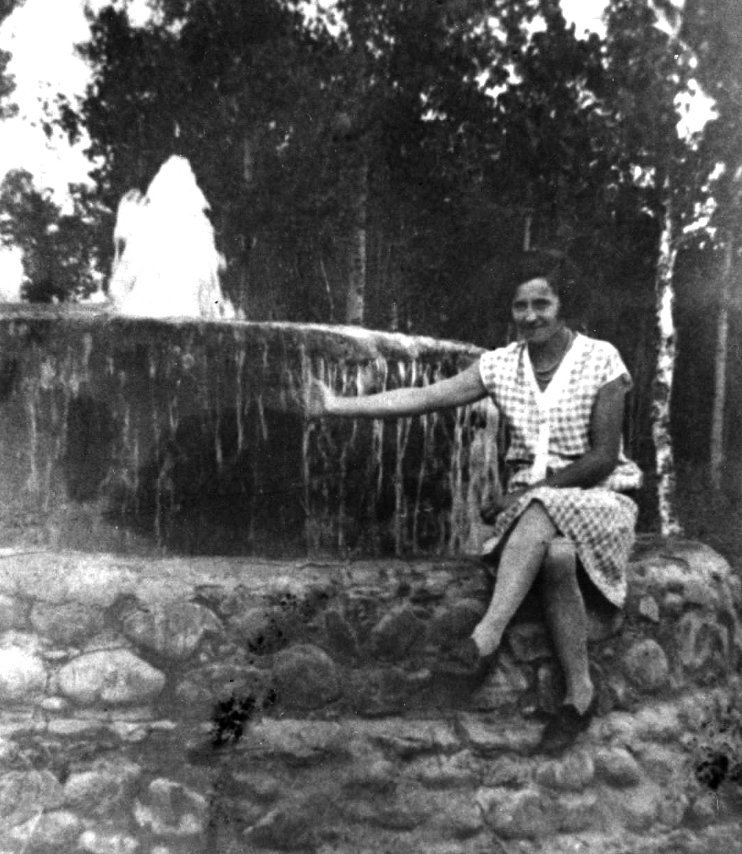 Donna lived across the street and is standing on her own front steps here. I am sure May was able to watch this future daughter-in-law many days!Weyenberg, George SrBefore moving to the Lower Peninsula of Michigan, May married George John Weyenburg in 1924. George took on Franks children and added one of his own. Heinz, May Ramona ParkHere is May at one of my favorite artesian wells, Ramona Park in Wequetonsing, Michigan. I loved to drink the water here myself as a child. Weyenberg, May and George '31May had been born a blue baby and as such was very weak, her brother had to carry her everywhere.