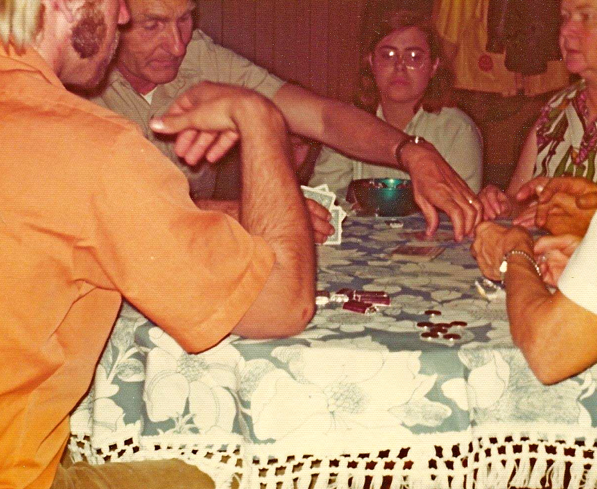 Growing up, we were not taught cards by my grandpa, but after he passed over, grandma started us out by teaching Kings Corners and when she thought we could handle it, we played Pinochle.