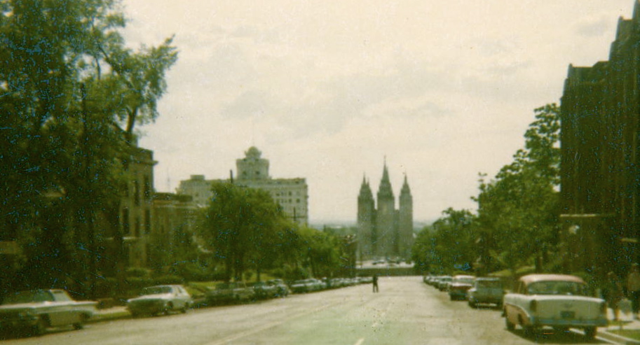 My parents were very happy that day, and as we left Salt Lake they took the above photo of the Temple. Decades later, after my own marriage in that edifice, I found myself living almost where the bottom right hand corner of the picture starts.